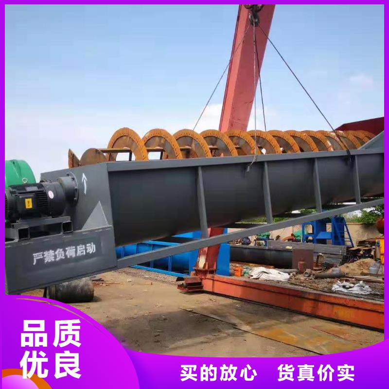 螺旋洗砂机是一款产量非常高的水洗砂设备,也称为螺旋洗石机,由机器根据市场需要、引进先进技术打造而成。该设备利用螺旋叶片的推进作用清洗泥土,对比轮式洗砂机产量高,对石子、沙子的清洗效果也比较好。机器研制的螺旋洗砂机结构简单、运行平稳、产量高,可以广泛的用于建筑工地、石料场、玻璃厂、电站、混凝土制石及电工地等部门中。螺旋洗砂机处理沙子、石子清洁度高、产量高螺旋洗砂机(洗石机)生产现场螺旋洗石机主要应用于砂石厂,预制厂,建筑工地及水电工地大量用砂石的脱泥筛选作业,也可用于矿石选别作业,能处理0-30mm以内的物料,可把物料上的泥土、灰粉等分洗成清洁的物料。螺旋洗砂机——洗砂现场工作原理螺旋洗砂机是一个倾斜安装的洗砂槽,矿浆由槽的上方给入,粗重颗粒沉入槽底,由螺旋输送到槽的上端排出,成为返砂。如与磨矿机构成闭路时,则返砂进入磨砂机再磨;细、轻颗粒随矿浆流通过槽的下端溢流排出,达到分级的目的。螺旋洗砂机主要适用于水电、建材、冶金等行业进行的除杂、分级、洗选等作业。该设备工作时,机器转子采用中心结构,螺旋叶片安装在中心轴上,由减速器连接到中心轴上进行工作。设备借助固体颗粒的比重不同,因而在液体中沉降的速度不同的原理,进行机械分级的一种洗选设备。性能特点(1)密封性能好洗石机采用了新型、有效的密封设计,使设备磨损少,经久耐用,有效地减少了粉尘污染,保护了环境。(2)结构新颖,清洗效果好新颖的密封结构、全封闭的油浴式传动装置、可调式溢流堰板,确保了该系列产品耐用,清洗、脱水效果好,细粒产品保持稳定。具有结构简单、运行平稳、洗砂干净、产量高等显著特点。(3)故障率少螺旋洗砂机在工作时,叶轮传动轴承装置与水和受水物料隔离,大大避免了轴承因浸水、砂和污染物导致损坏的现象发生。螺旋洗砂机展示,型号规格齐全螺旋洗砂机结构图,1皮带轮,2电机,3驱动支持,4出料口,5螺旋桨叶,6螺旋固定座,7主机机架,8壳,9主轴,10轴承座,11减速装置,12皮带螺旋洗砂机(洗石机)使用规则:1、洗石机在启动前先用手旋转转子,检查机器各部有无异常现象。2、螺旋洗砂机使用单位应根据现场具体情况,在三角皮带上安装防护设备后,才能运转。3、洗石机运转时不可进行修理及清理工作,严禁开机检修。4、不得加入超过规定尺寸之料石。5、机器应按固定方向旋转,不得反向旋转。6、在螺旋洗砂机运转时,如发现有不正常的振动或响声时,应立即停止加料,待箱内物料排尽后,立即停止电机,停机检查,排除故障后,才能继续运转。遇紧情况先停止电机,在开机前必须腔内物料,空载启动。7、洗石机工作场地不应堆放杂物,并必须有足够的光线的照明设备。螺旋洗石机也就是我们常说的螺旋洗砂机,所以螺旋洗石机只是其中的一种,以下对其用途、工作原理、型号及生产厂家进行简单说明。螺旋洗石机生产厂家河南机器作为良好的洗石机、制砂机生产厂家,生产的该设备种类很多,制造工艺成熟,洗选效果显著,并且于用户来讲,选择范围更广,质优价优,是具有很高的性价比选择。欢迎客户点击咨询价格或者前来免费参观等。